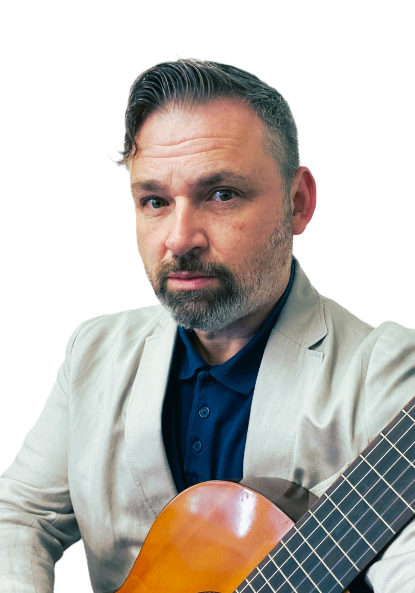 Mr. Kellett is a British multi-instrumentalist, singer, and teacher who has been active since the 1980s. From his start in indie rock bands to his progression into flamenco and classical, his musical journey reflects a deep versatility and commitment to artistic growth.